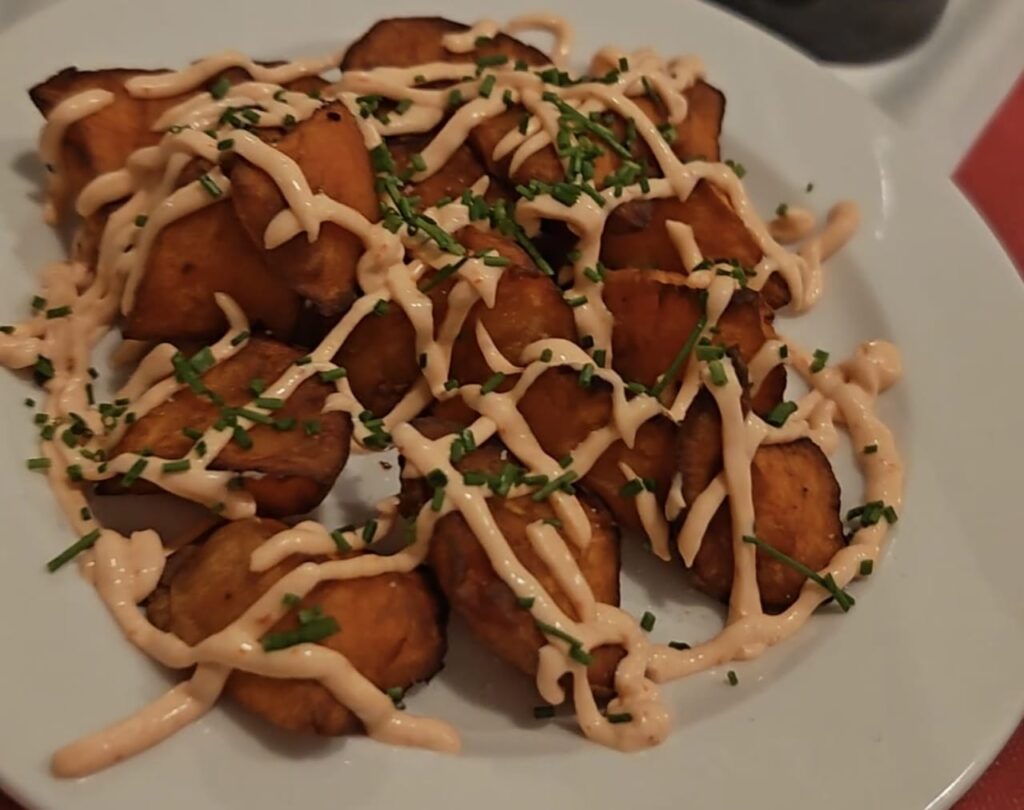 Las bravas de boniato reconcilian con este tubérculo que tantas veces aparece mal tratado. Aquí su dulzor natural contrasta con la brava que pica sin arrasar, la textura exterior cruje mientras el interior mantiene cremosidad. Nada de boniato aguado o crudo por dentro, sino producto frito con criterio en aceite limpio a temperatura correcta.