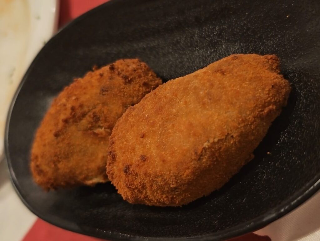 Las croquetas de rabo de toro demuestran que Hernán aprendió bien en Viridiana: bechamel que liga sin apelmazar, rabo desmechado con melosidad que evidencia horas de cocción lenta, rebozado que encapsula sin enmascarar. Croqueta que explota en boca liberando jugos gelatinosos, nada de masas industriales ni rellenos genéricos.